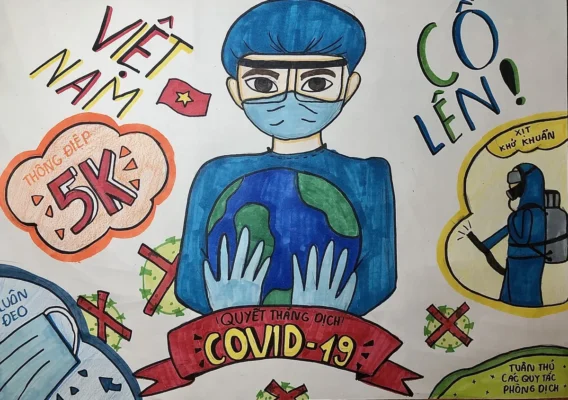 Khuyến cáo 5K, những mũi vaccine ngừa COVID-19 được tiêm, sự hy sinh của các y bác sĩ,… là những thông điệp được gửi gắm trong hầu hết các tác phẩm.